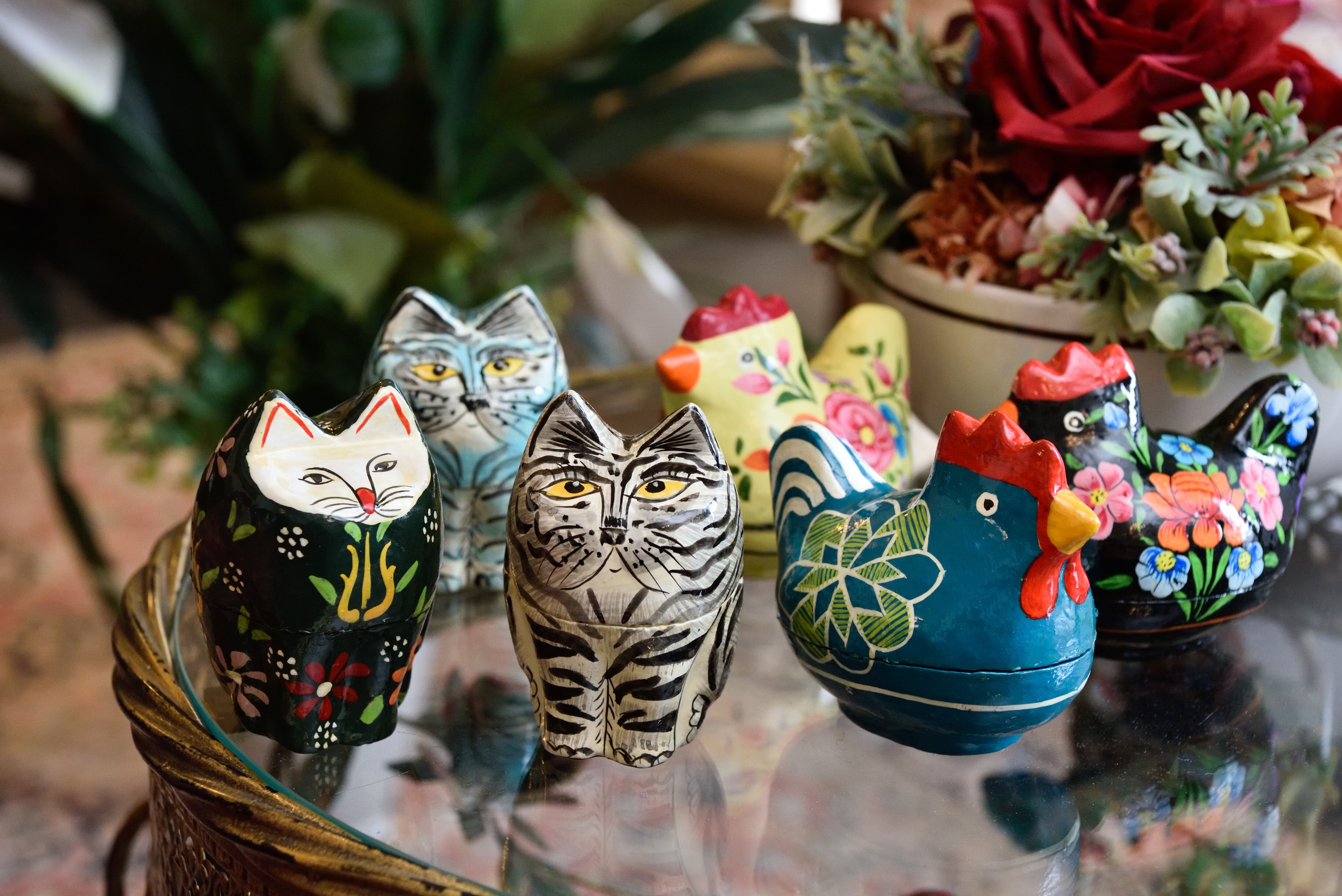 日本でいう張り子のように、小さくちぎった紙と紙粘土を型には、成型をしてできたBOXなどにペイントをしてデザインします。