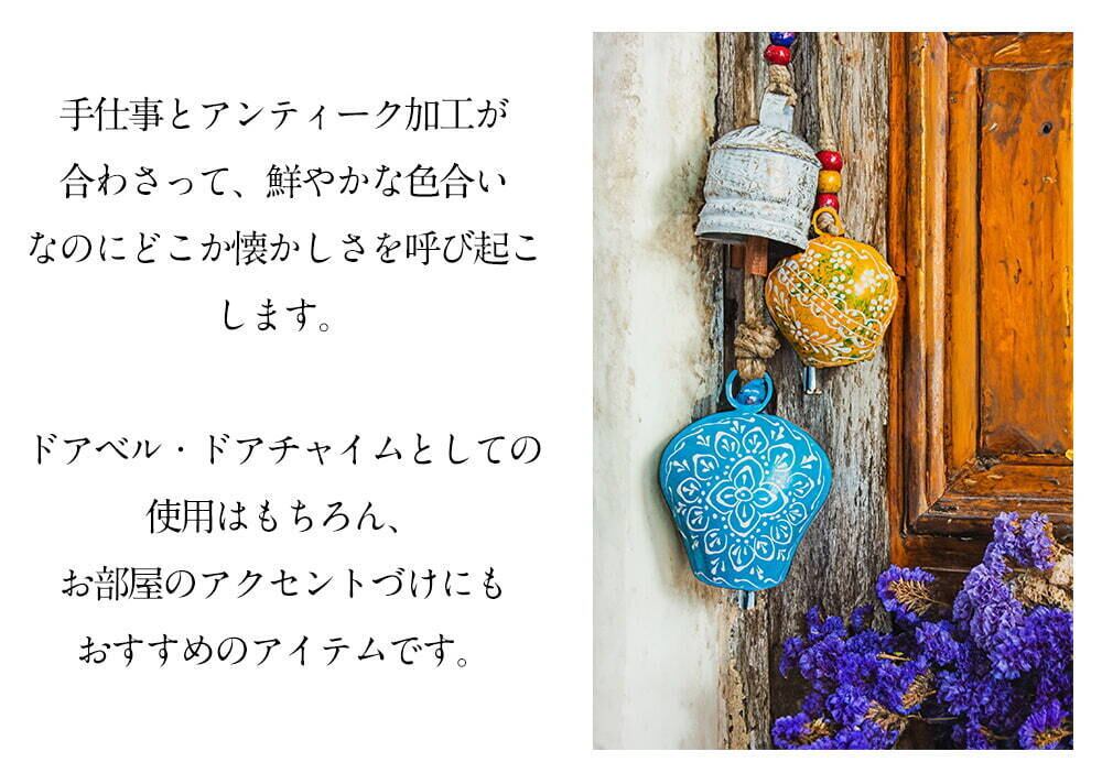 インドらしいカラーリングにアンティーク加工を施したハンギングベルがインドからやって来ました。