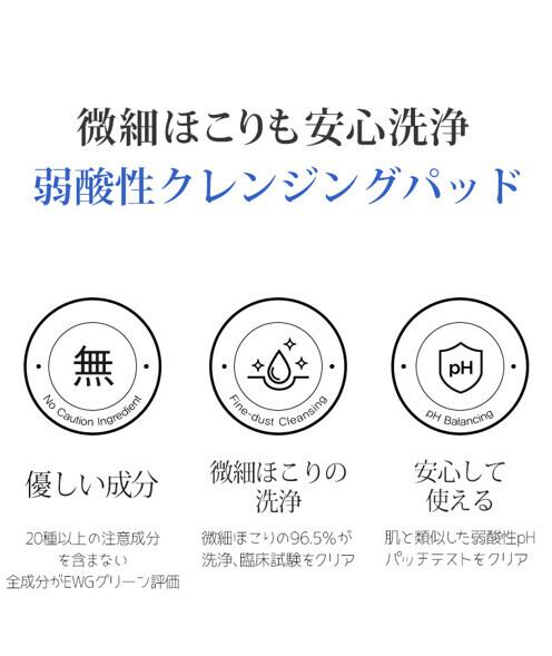 クレンジング液がたっぷりしみ込んだ弱酸性で、8cmの天然成分由来ビッグサイズクレンジングパッドで手軽にメイクや汚れをしっかりと落とします。